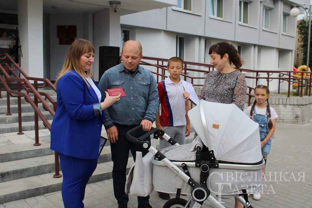 Там, где появляется специалист центра социального обслуживания населения Анастасия Тарасевич, речь всегда идет о многодетных семьях. Этот раз не стал исключением. Центр соцобслуживания прибыл на праздник, чтобы поздравить с рождением третьего ребенка семью Андрея и Елены Гончевых и вручить паре удостоверение многодетной семьи.