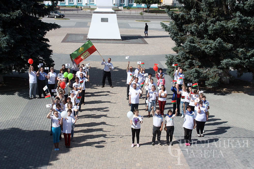 Открылся фестиваль на городской площади флешмобом «75», который участники посвятили 75-летию освобождения Беларуси от немецко-фашистских захватчиков. Акция получилась яркой и красочной. Во многом благодаря районной организации РОО «Белая Русь», которая поддержала инициативу ОДПИ и украсила флешмоб воздушными шарами, флажками и бутоньерками.