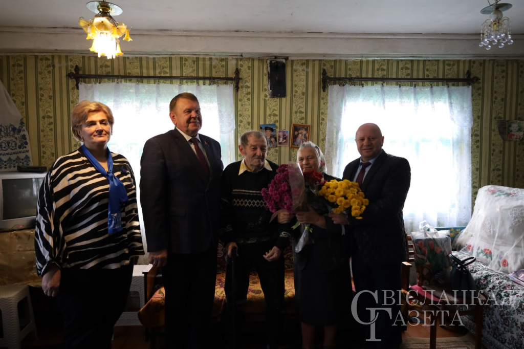 Юбиляры радушно встречали гостей, которые приехали поздравить их с такими важными событиями в жизни. В деревне Юбилейной чествовали Александра Михайловича и Раису Михайловну Бобовик, в Великом Селе – Валерия Михайловича и Валентину Николаевну Зень, в Бобровниках – Болеслава Казимировича и Марию Ивановну Горбач, в Новом Дворе – Алексея Леонтьевича и Веру Васильевну Карпук, в Доброволе – Евгения Павловича и Людмилу Фоминичну Мартос, в Гринках – Ивана Ивановича и Веру Михайловну Ярош.