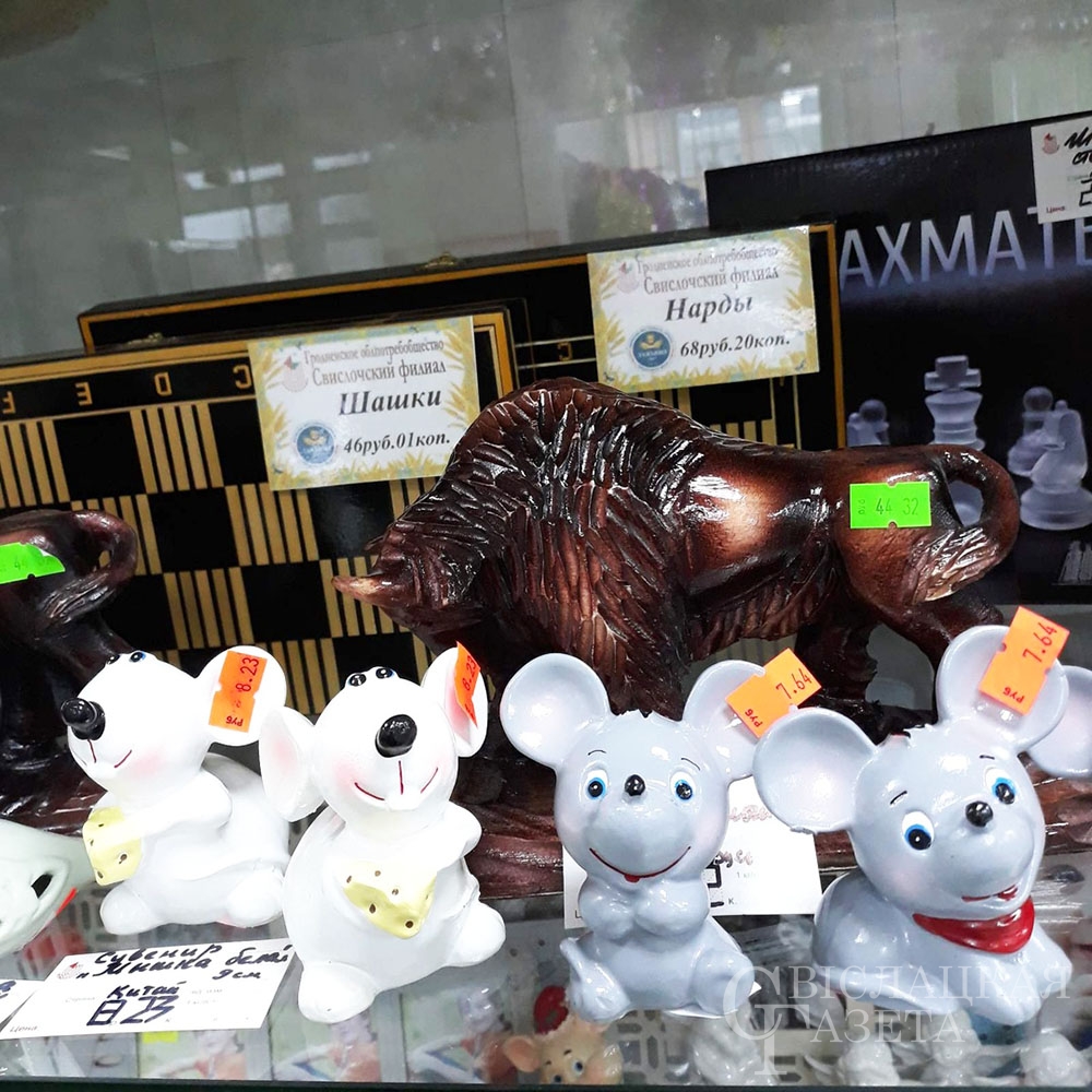 Праздник живет и на прилавках первого этажа. Уже с начала ноября здесь готовы предложить покупателю самые разные украшения для новогоднего дерева. Отдельный разговор – обилие сувенирной продукции, среди которой декоративные елочки, Дед Мороз со Снегурочкой, ну и, конечно, главный символ 2020 года – мышь. Причем в ассортименте.