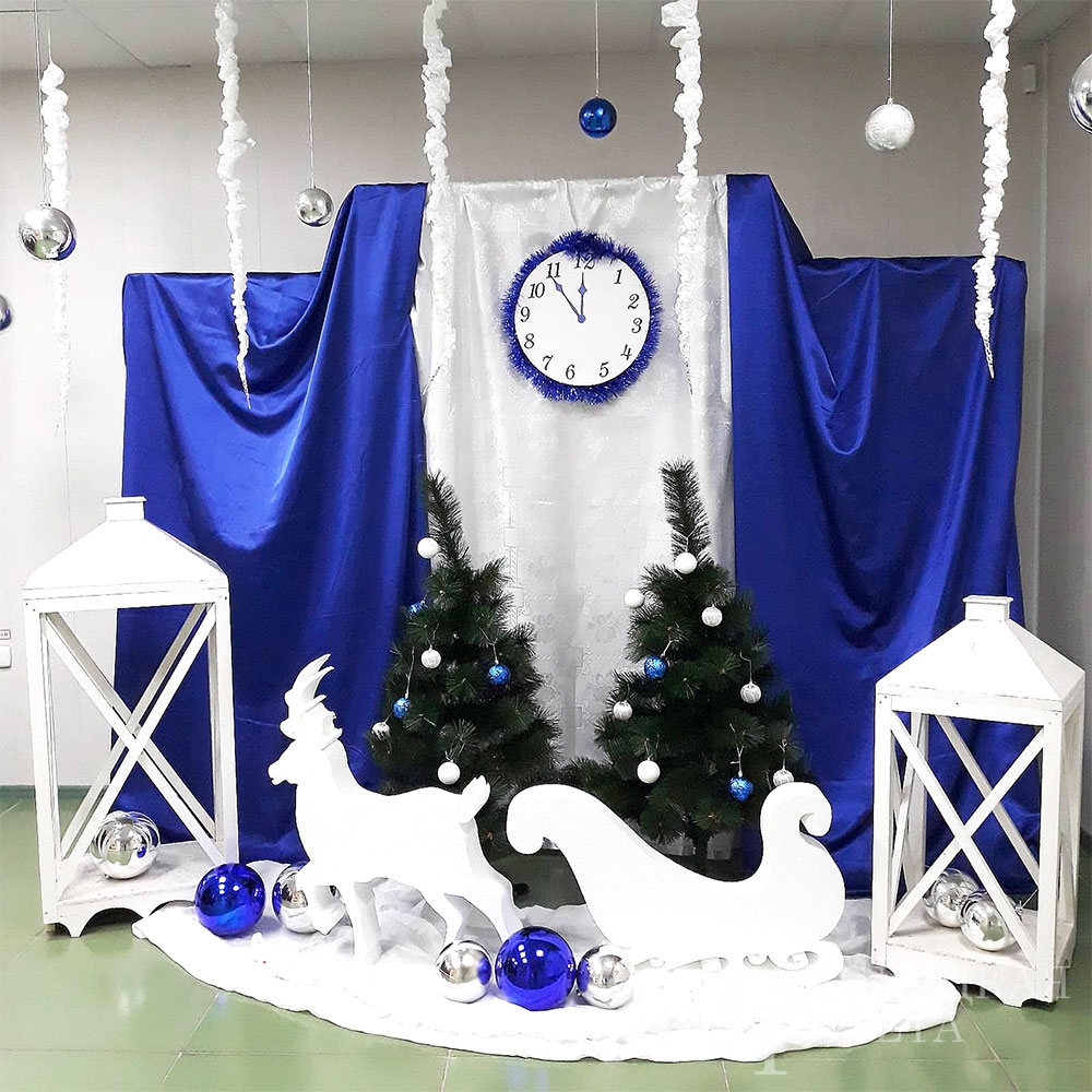 Приподнятым настроением ожидания самого волшебного праздника заряжают сани, запряженные оленями, большие шары, рассыпанные по снежному покрывалу и поблескивающие боками у потолка, украшенные елочки-красавицы и огромные часы, стрелки которых, словно в песне из «Карнавальной ночи», замерли на без пяти двенадцать.