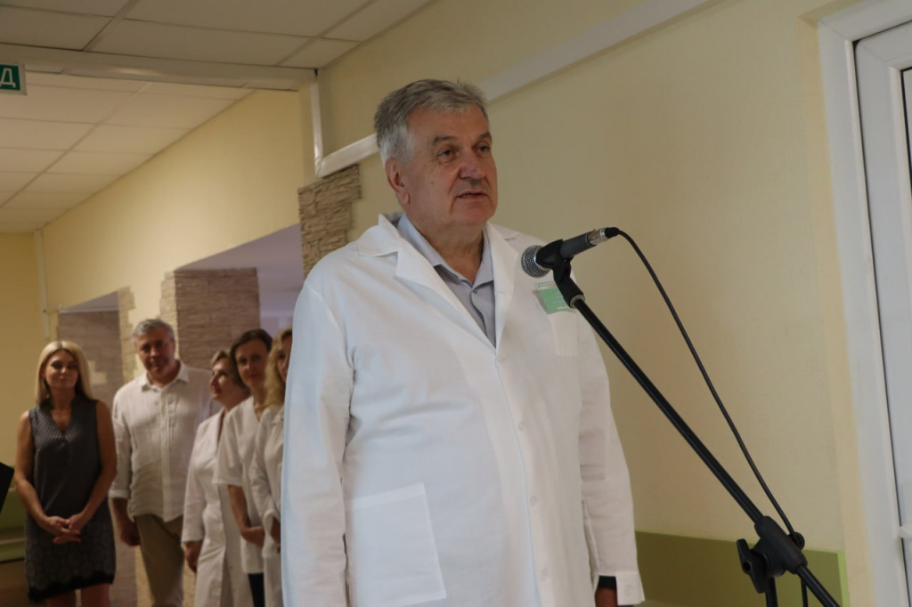 После церемонии открытия председатель райисполкома Андрей Грицкевич вместе со своим заместителем Юрием Куликовым ознакомились с ходом ремонта терапевтического отделения на 5-м этаже райбольницы и новыми условиями, созданными для медперсонала и пациентов, еще одного терапевтического отделения на 4-м этаже.
