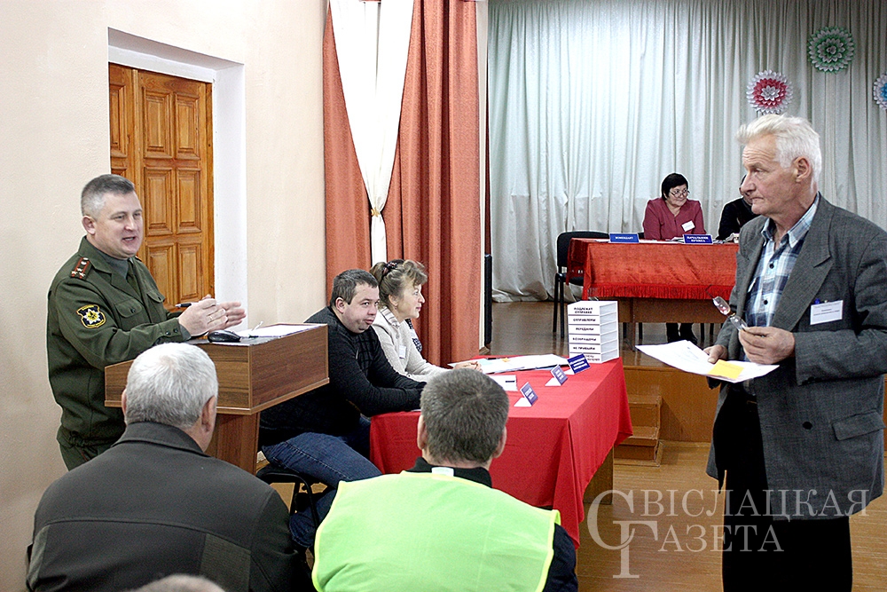 Темой занятия стал порядок работы пункта оповещения и сбора сельсовета по оповещению, сбору и отправке мобилизационных ресурсов на пункт предварительного сбора военнообязанных военного комиссариата. Занятие проводил военный комиссар Волковысского, Берестовицкого и Свислочского районов полковник Сергей Игнатович.