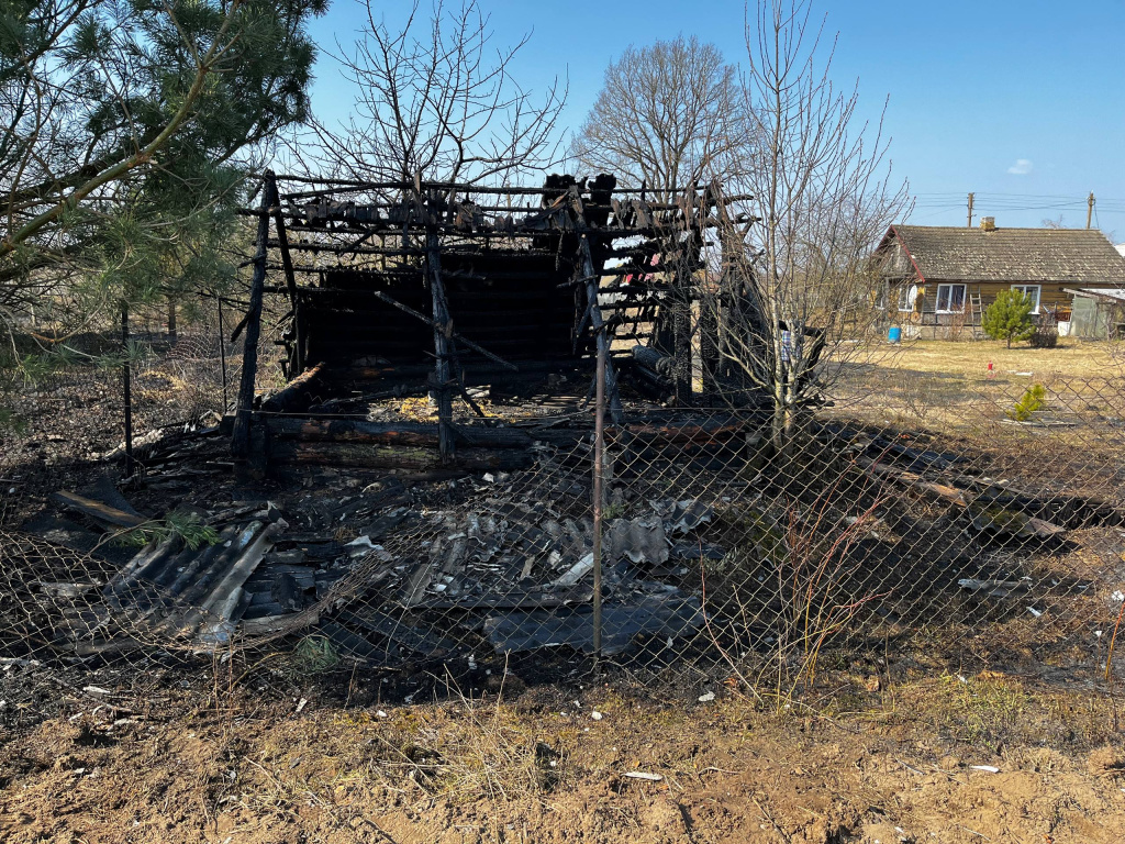 В этот же день после 16.00 поступило сообщение о пожаре хозяйственной постройки в д. Качки. Хозяйка рассказала, что ее сожитель на приусадебном участке развел костер для сжигания мусора. Все это оставил без присмотра. Спустя 2 часа огонь перекинулся на сухую растительность, а потом на хозяйственную постройку. Строение полностью уничтожено огнем.