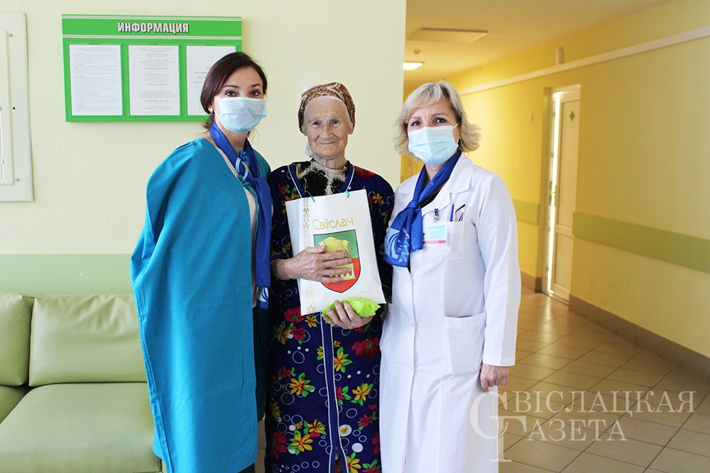 Сейчас Анастасия Викентьевна находится на оздоровлении в центральной районной больнице. Сюда с гостинцами и благодарностью за сына-героя пришли председатель районной организации ОО «БСЖ» Ирина Павлюченя и ее заместитель Елена Молчанова.