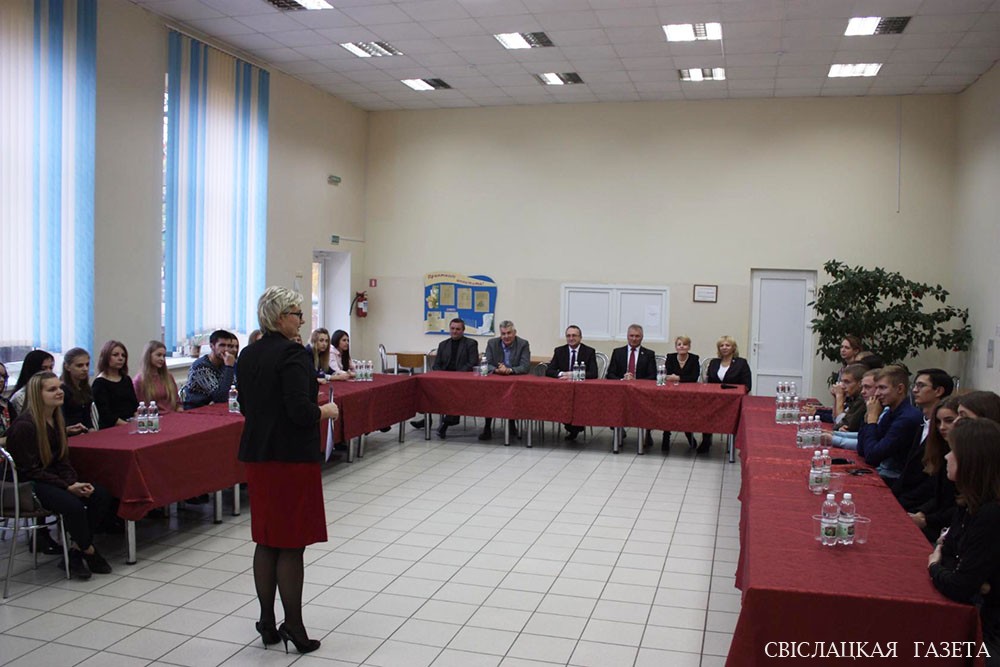 Накануне встречи молодежь вместе с представителем райкома ОО БРСМ Татьяной Прокопчук побывала в районном историко-краеведческом музее. Знакомство с районом продолжилось просмотром документального фильма «Свiслаччына – жамчужына асветы». Основной частью встречи стал живой диалог между представителями власти и молодыми кадрами. Каждый мог задать волнующие вопросы и получить ответы из первых уст.