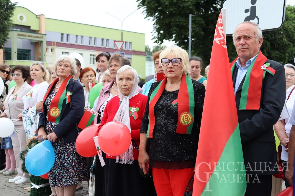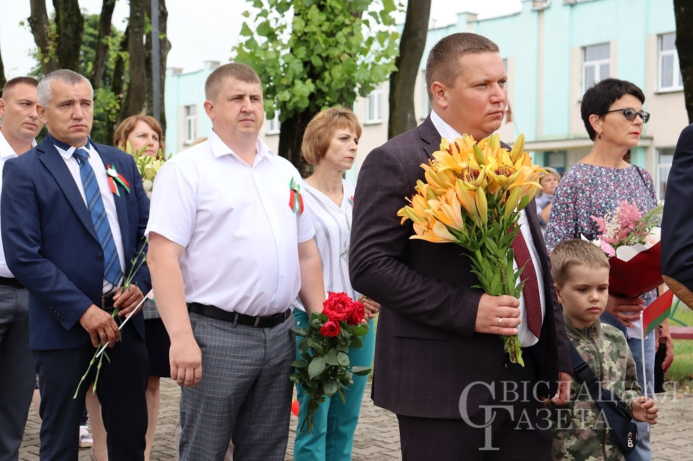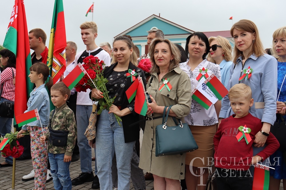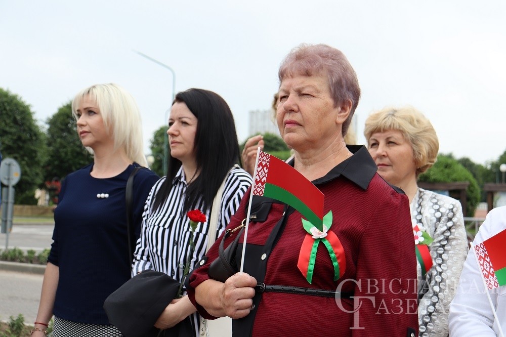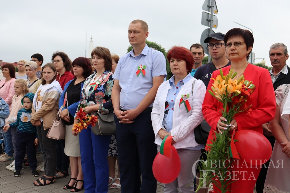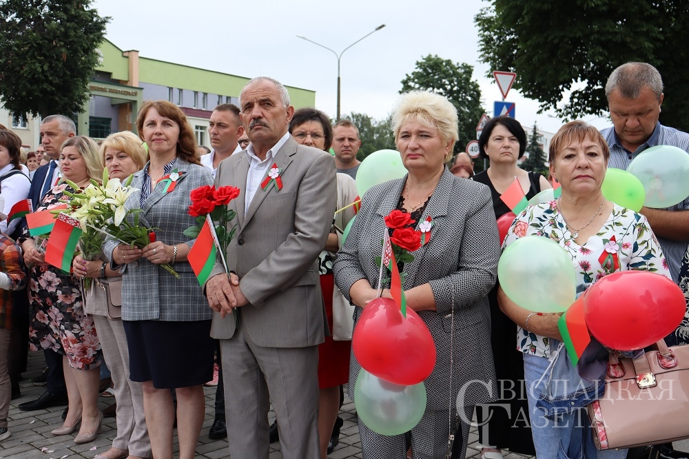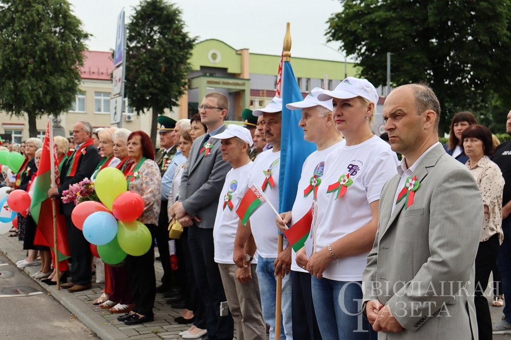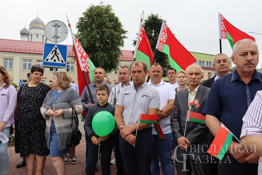 Свята ў Свіслачы пачалося з урачыстага мітынгу. На цэнтральнай плошчы сабраліся дарослыя і дзеці, прадстаўнікі калектываў і грамадскіх аб’яднанняў.