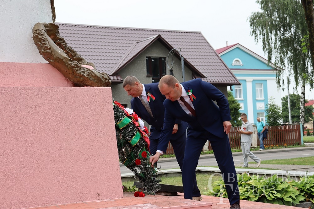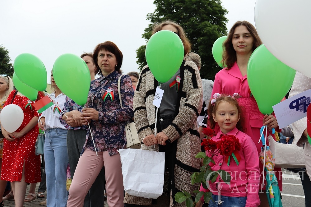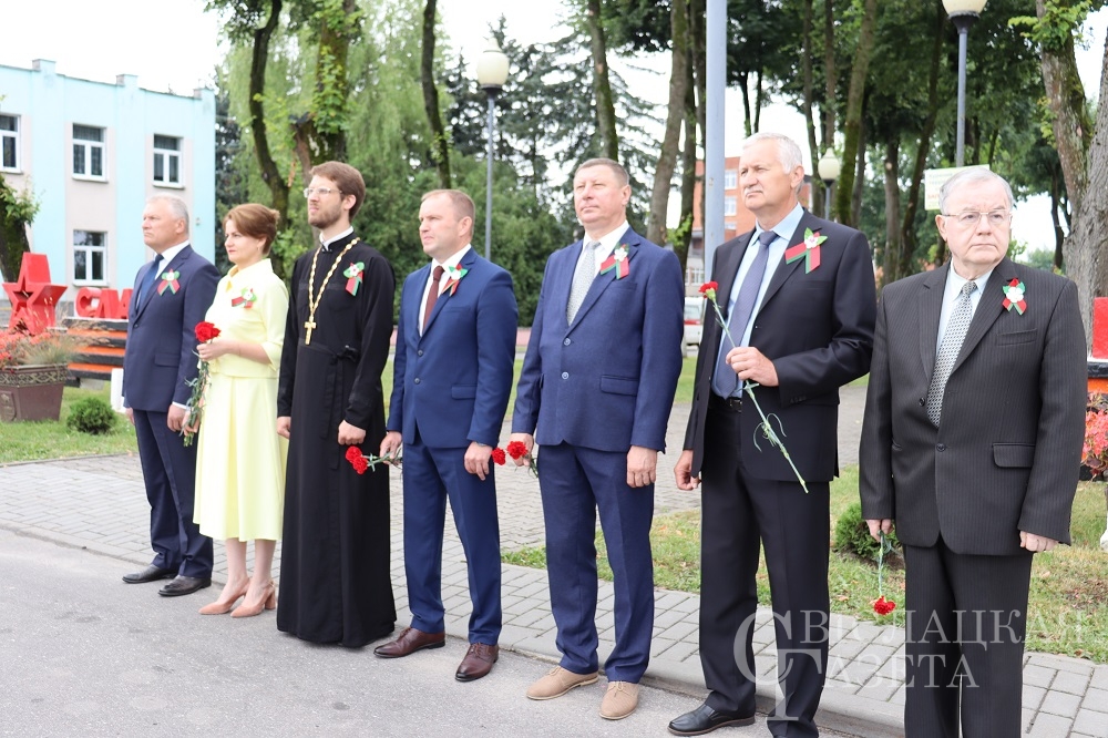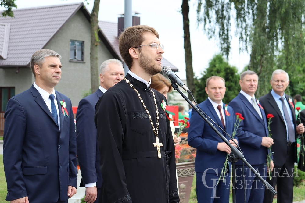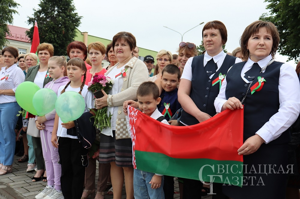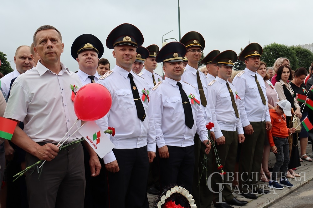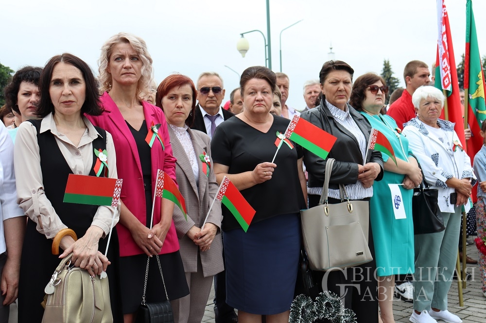 Свята ў Свіслачы пачалося з урачыстага мітынгу. На цэнтральнай плошчы сабраліся дарослыя і дзеці, прадстаўнікі калектываў і грамадскіх аб’яднанняў.