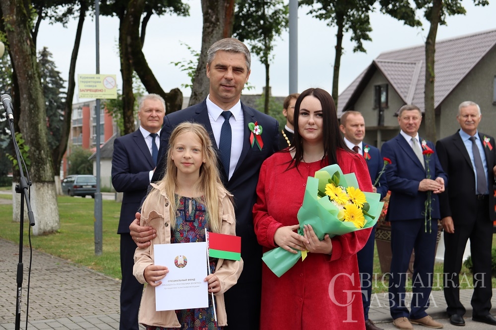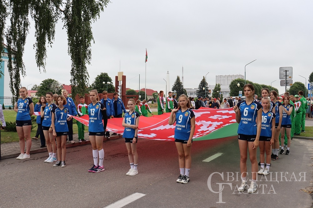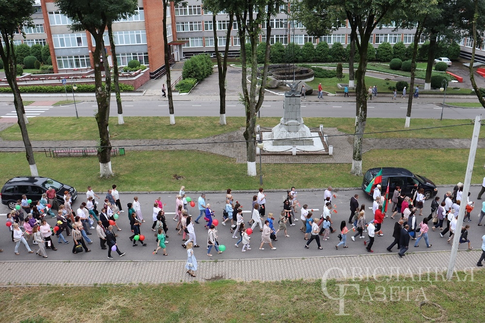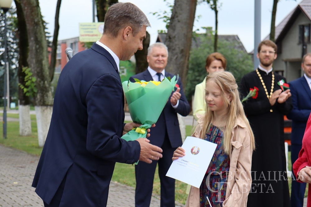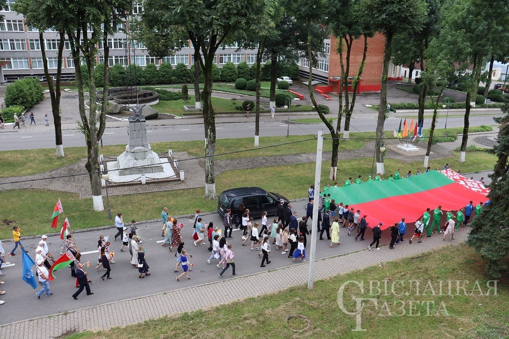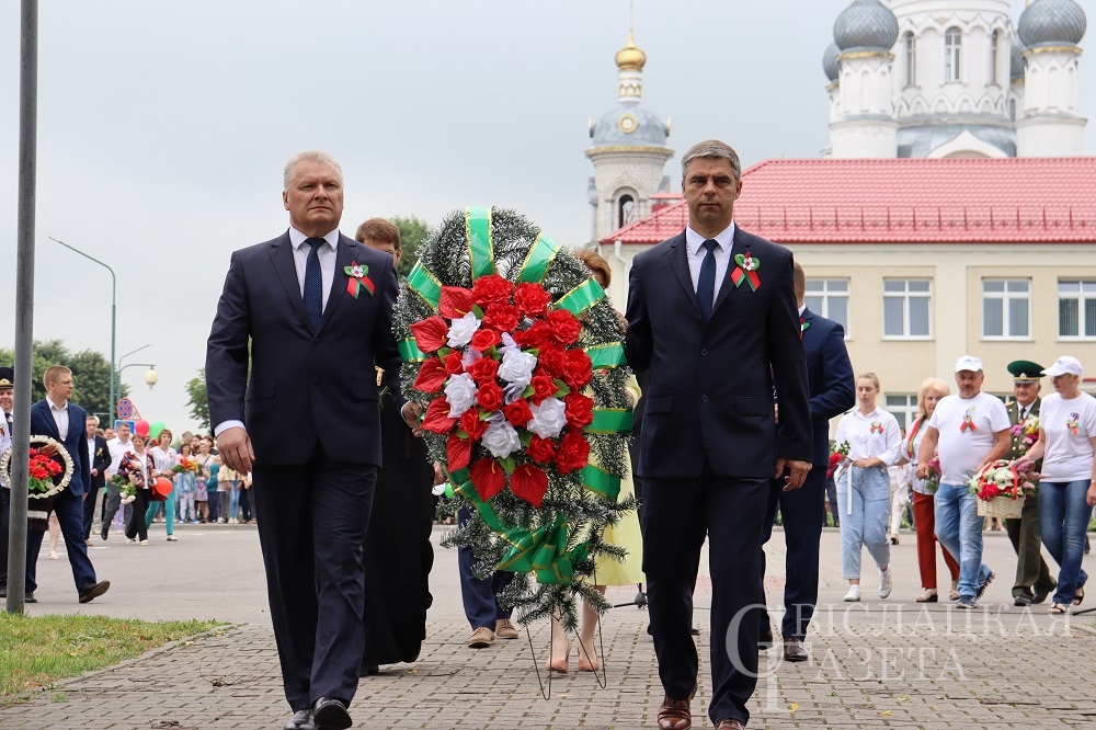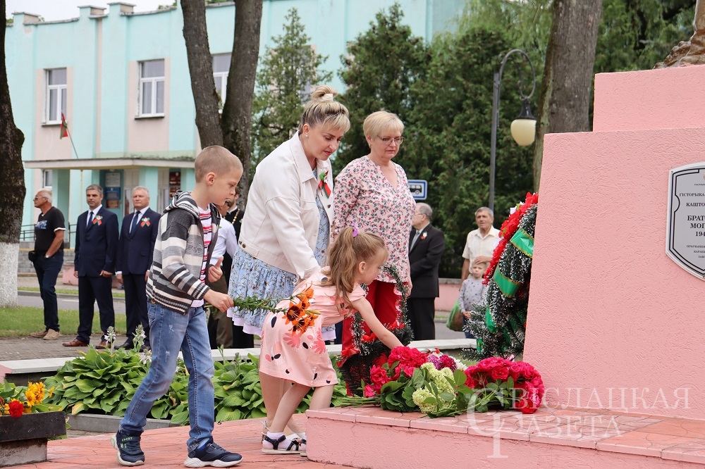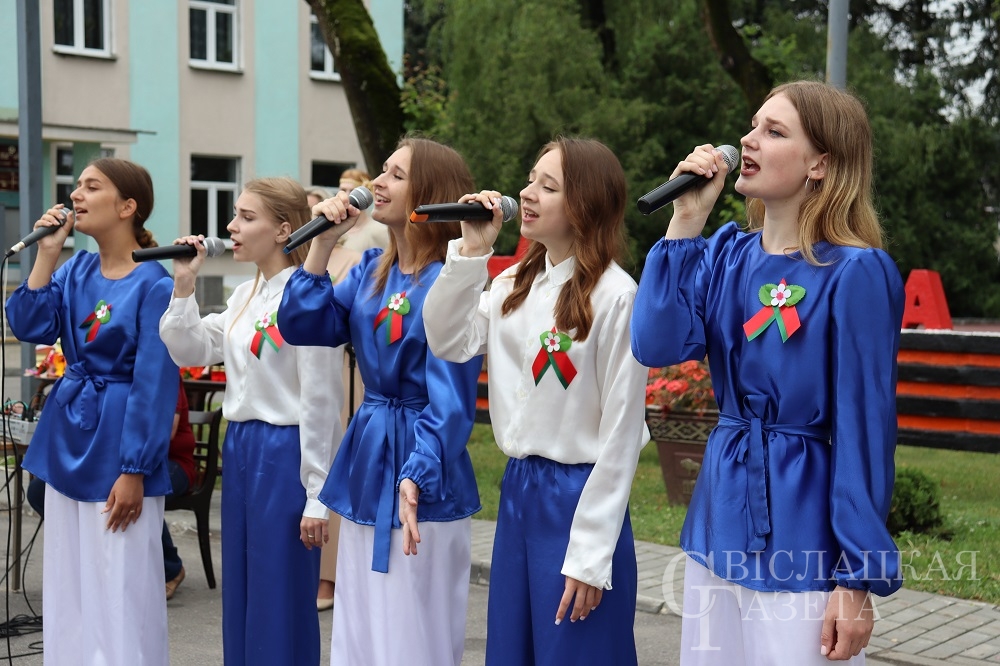 Свята ў Свіслачы пачалося з урачыстага мітынгу. На цэнтральнай плошчы сабраліся дарослыя і дзеці, прадстаўнікі калектываў і грамадскіх аб’яднанняў.