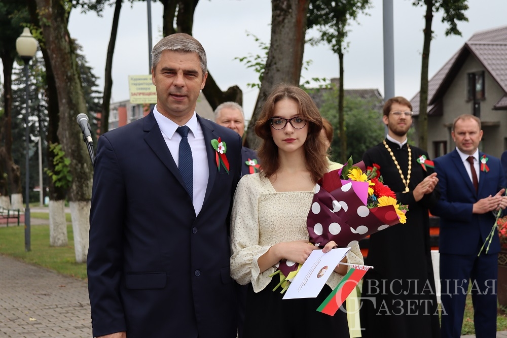 – Гэта свята перш за ўсё вас, шаноўныя вэтэраны, тыя, хто з намі, і тыя, каго на вялікі жаль побач з намі няма. Гэта перш за ўсё свята вас, тыя, хто на сваіх плячах вынес усе цяжкасці пасляваеннага будаўніцтва народнай гаспадаркі, – звярнуўся да ўдзельнікаў мітынгу Аляксандр Людвігавіч. – Незалежнасць – гэта не спадчына, якую дорыць гісторыя на ўсё жыццё, гэта не індульгенцыя на нашу з вамі абыякаваць, бязвольнасць і вечнае спадзяванне на кагосьці альбо на штосьці. Незалежнасць – гэта штодзённая клапатлівая праца кожнага з нас з вамі. Кажуць, што багатай краіну робіць гандаль, а незалежнай – сельская гаспадарка. Таму, што калі ты забяспечаны прадуктамі харчавання, ты тады незалежны. І я ў першую чаргу хачу сказаць словы вялікай удзячнасці працаўнікам вёскі за тое стабільнае, паступовае развіццё, якое мы назіраем (у тым ліку і ў гэтым годзе), займаючы пачэснае трэцяе месца па вытворчасці валавай прадукцыі сельскай гаспадаркі. Я кажу словы самай шчырай удзячнасці работнікам жыллёва-камунальнай гаспадаркі, якія забяспечваюць нашу жыццядзейнасць, транспартнікам, супрацоўнікам эканамічнай службы, прадстаўнікам сілавога блока і, безумоўна, інтэлігенцыі за тую выніковую працу, якая была прадэманстравана на працягу папярэдняга года. У галіне культуры мы трэція у вобласці, у спорце – другія. Агульнае трэцяе месца ў Гродзенскай вобласці раён заняў у сацыяльнай сферы. Мы прыкладваем пэўныя намаганні і будзем рабіць усё ад нас залежнае, каб жыццё жыхароў раёна станавілася лепшым і камфортным. Мы будзем будаваць дарогі, жывёлагадоўчыя аб’екты, будзем развіваць і даваць другое жыццё сацыяльным аб’ектам. Паважаныя свіслачане, няхай у сям’ях кожнага з вас пануе згода, а ў душы – упэўненасць у заўтрашнім дні.