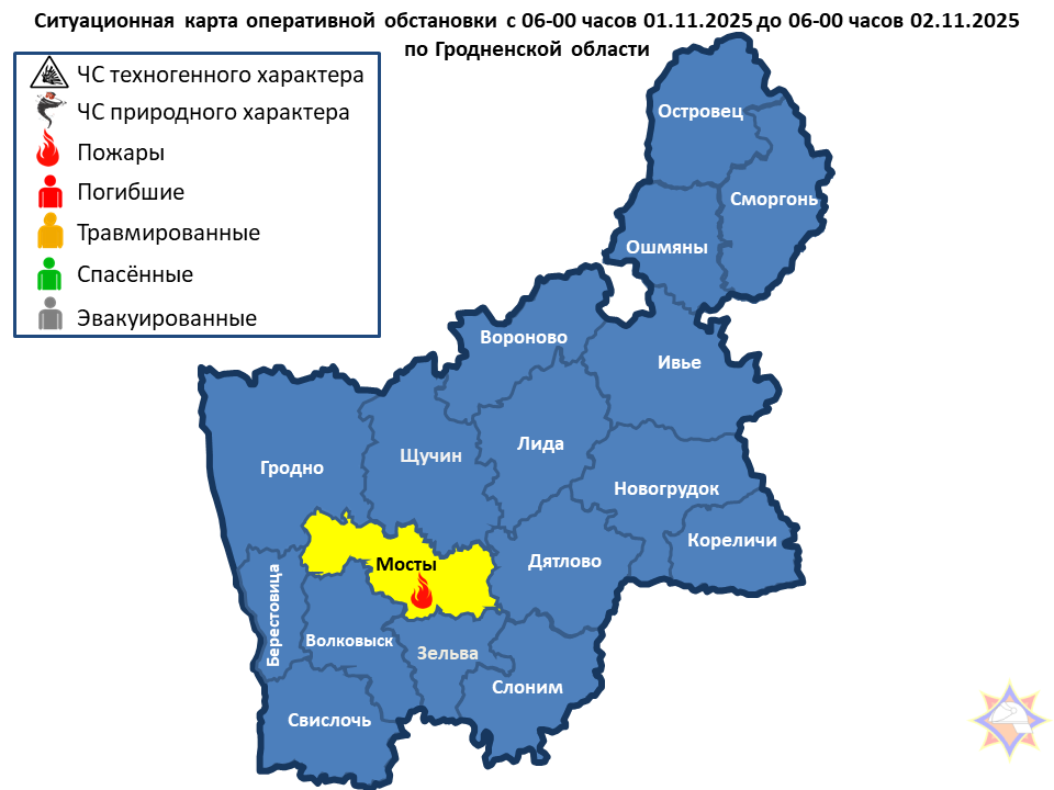 За сутки подразделениями МЧС области совершено 25 выездов, из них: 1 – пожар. Мостовский район – пожар в парильном помещении агроусадьбы. Люди не пострадали.