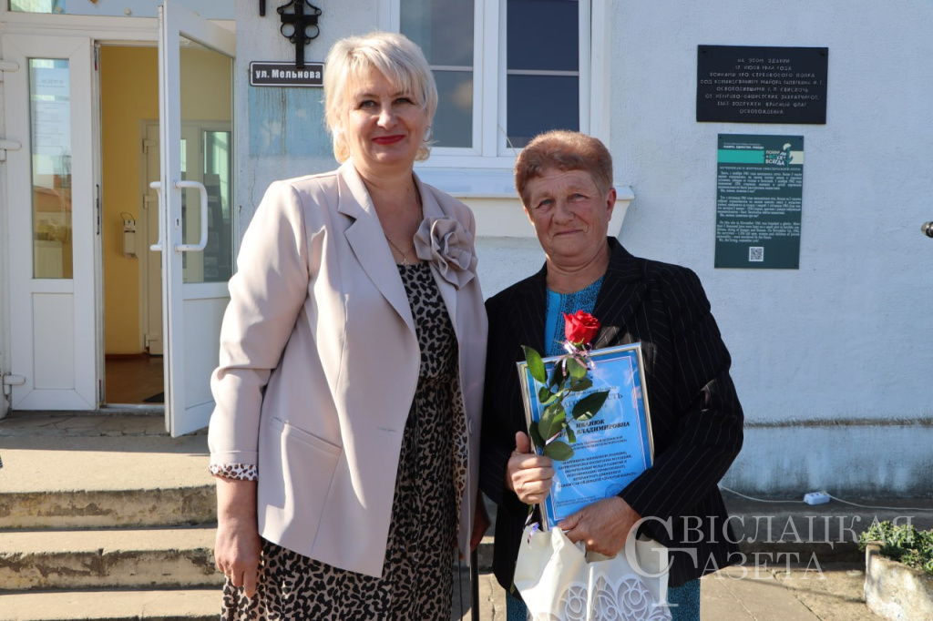 Заведующий сектором идеологической работы и по делам молодежи Свислочского райисполкома, председатель Свислочской районной организации ОО “Белорусский союз женщин” Ирина Палюченя поблагодарила всех за активную гражданскую позицию. Ирина Эдуардовна вручила подарок Елене Прокопик, поблагодарила ее и ответсвенного секретаря Тамару Гинч за их неустанную работу с ветеранами труда, людьми золотого возраста.
