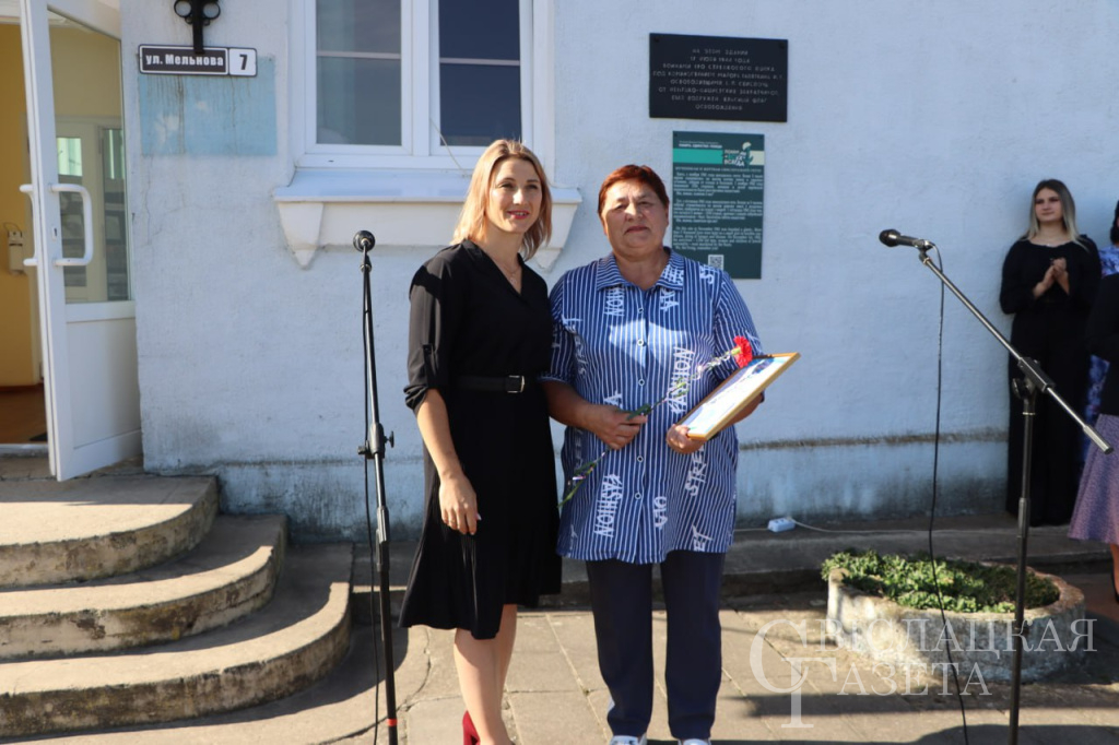 Много добрых, искренних слов прозвучало из уст председателя районного объединения профсозов Светланы Кривопуст. За активную жизненную позицию, патриотическое воспитание молодежи, значительный вклад в развитие и популиризацию профсоюзного и ветеранского движения и в связи с 14-й декадой “Золотой возраст” профсоюзный лидер вручила Благодарности председателю ветеранской организации агрогородка Гринки Марии Самолевич, председателю первичной профсоюзной организации Добровольского сельского Совета Терезе Иванюк. Тереза Владимировна обратилась к организаторам праздника со словами благодарности, прочитала свои стихи.